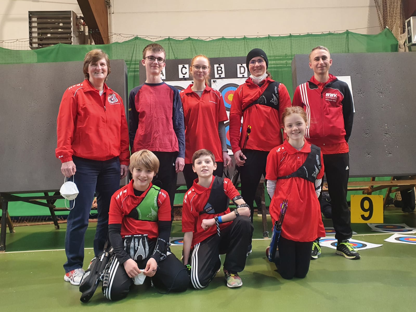 Die Scheiben werden selbständig auf- und abgebaut. Das Pfeilnetz wird zum Schutz über die Wandbreite gezogen. Die Halle muss beim Verlassen gekehrt werden.