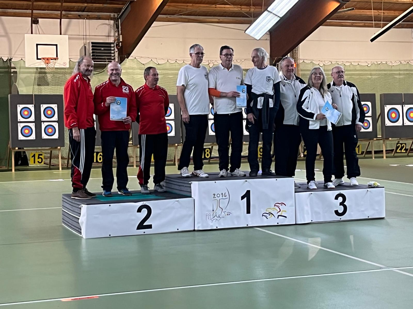 Bogenschützen Vom 10.03. bis 12.03. 2023 fand in Garching Hochbrück die Deutsche Meisterschaft im Bogenschießen Hallenrunde statt. Aus unserer Abteilung erreichten Johannes Berner, Kazimierz Szczypinski und Thomas Holzer die Limitzahl, um an der Meisterschaft teilzunehmen. Recurve Master belegte Kazimierz einen hervorragenden 7. Platz und Thomas erkämpfte den 29. Platz. Schüler A Recurve Johannes Berner erreichte von ganz Deutschland den respektablen 24. Platz. Wir gratulieren zur erfolgreichen Teilnahme!